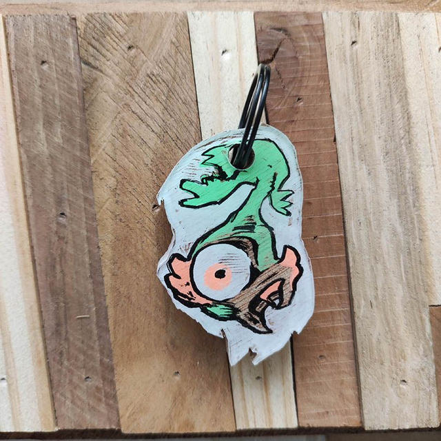 Porte clé pièce unique, peint à la main, coulé sous résine.