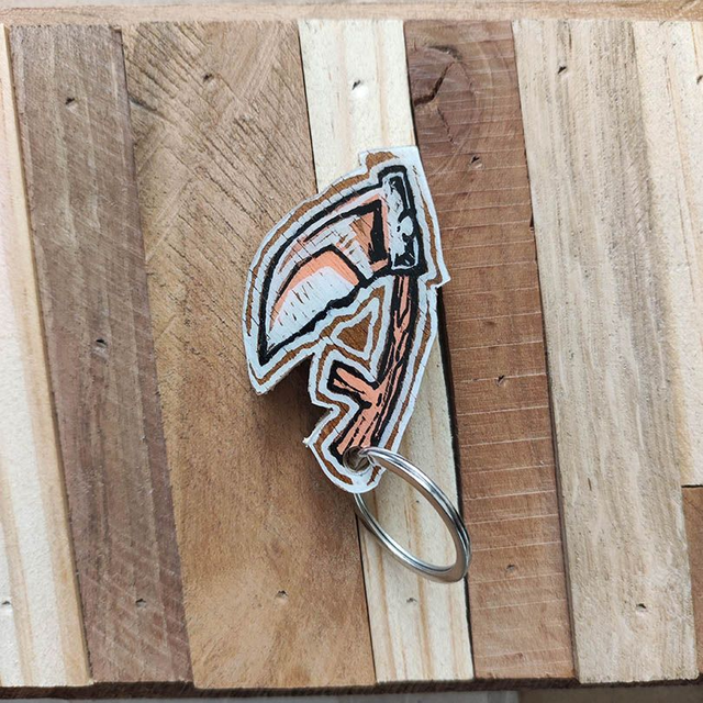 Porte clé pièce unique, peint à la main, coulé sous résine.