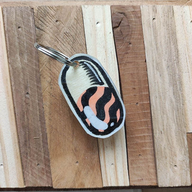 Porte clé pièce unique, peint à la main, coulé sous résine.
