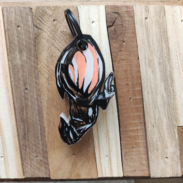 Porte clé pièce unique, peint à la main, coulé sous résine.
