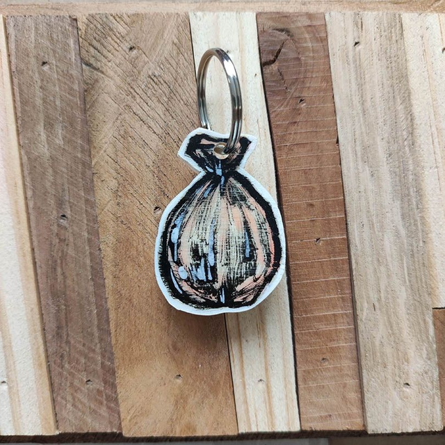 Porte clé pièce unique, peint à la main, coulé sous résine.