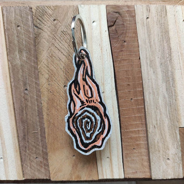 Porte clé pièce unique, peint à la main, coulé sous résine.