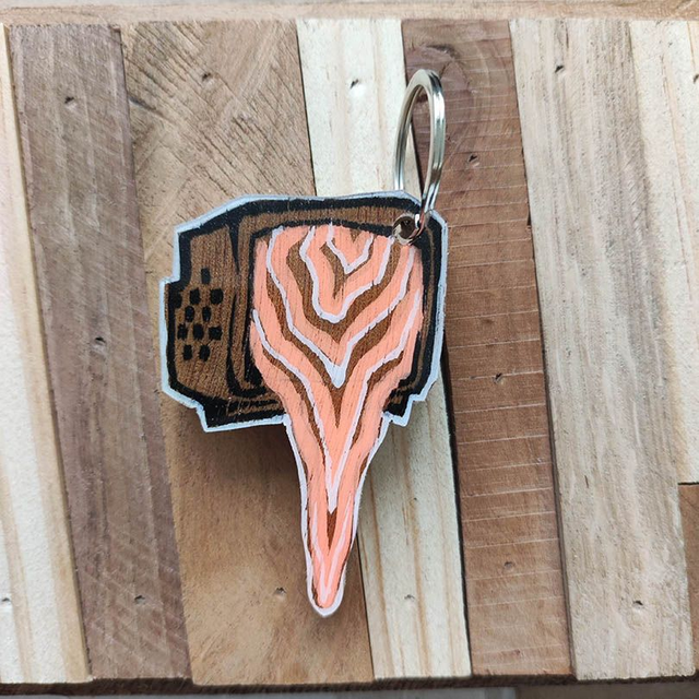 Porte clé pièce unique, peint à la main, coulé sous résine.