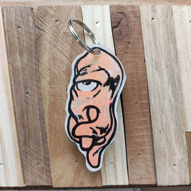 Porte clé pièce unique, peint à la main, coulé sous résine.