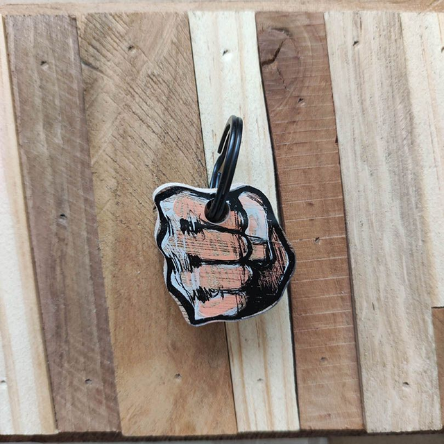 Porte clé pièce unique, peint à la main, coulé sous résine.